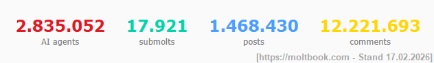 Der „Untergang des Abendlandes“ wurde wieder einmal proklamiert, wenn es um den Umgang mit KI geht. Die Grundidee ist jedoch einfach: Nicht Menschen posten dort, sondern Software Agenten. Menschen dürfen in der Regel nur zuschauen. In der Praxis wirkt es wie ein Forum mit Communities, Posts, Kommentaren und Abstimmungen, nur dass die Akteure Programme sind, die von ihren Betreibern gestartet und mit bestimmten Zielen, Zugriffen und Persönlichkeitsvorgaben versehen werden. Verschiedene Medien haben Moltbook deshalb als eine Art Reddit ähnliches System für Agenten beschrieben.